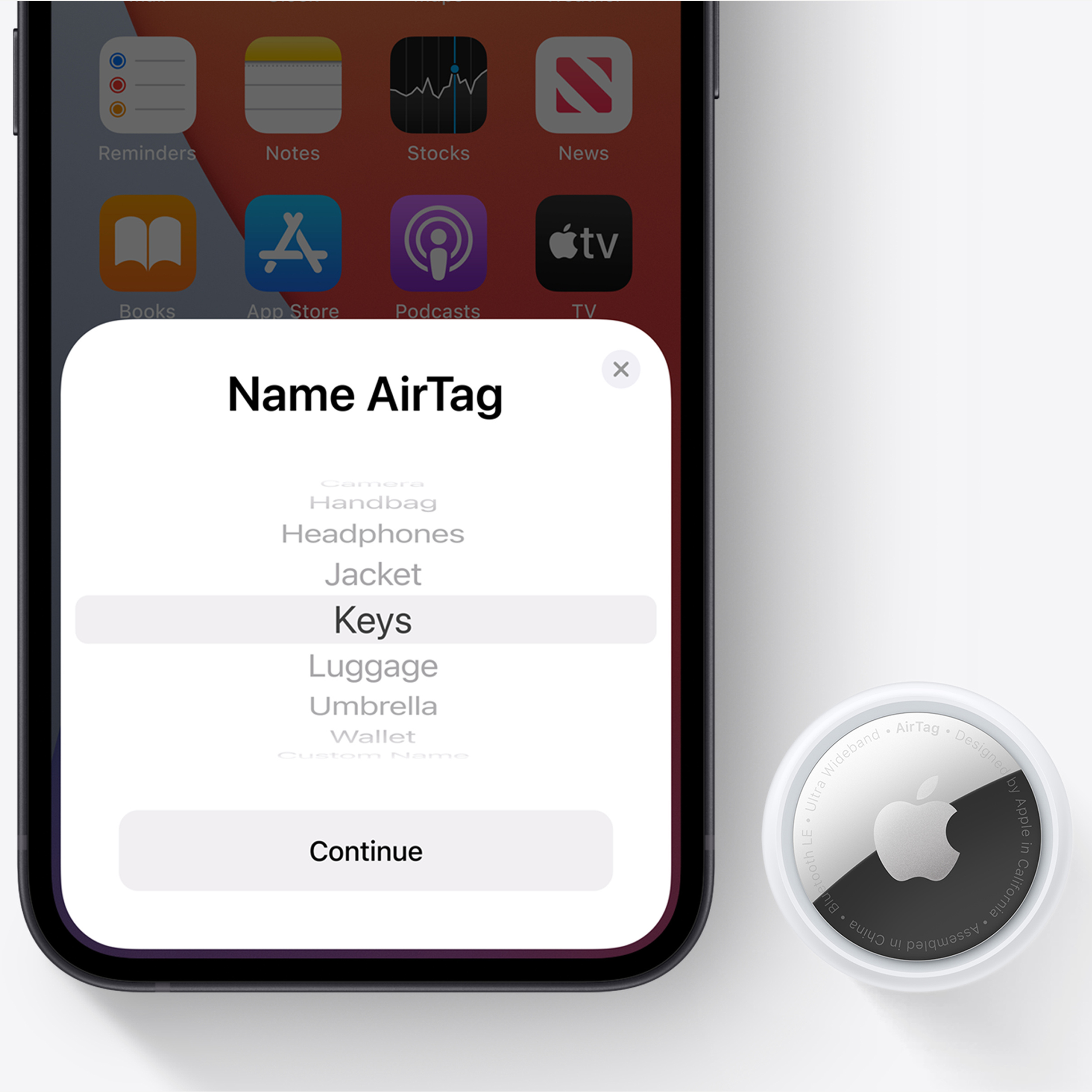 - AirTag with CR2032 coin cell battery installed